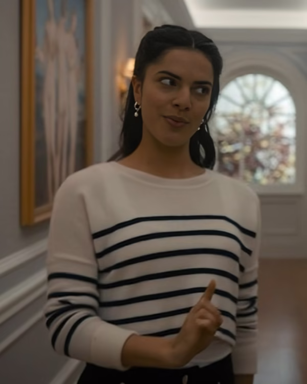Step into effortless elegance with this Sara Silva Striped Sweater, inspired by her standout look in Cruel Intentions. At Western Leather Jacket, we bring celebrity fashion straight to your wardrobe with premium‑quality craftsmanship and a touch of everyday comfort. This sweater features a timeless white base paired with contrast stripes, making it the perfect blend of minimal and trendy.